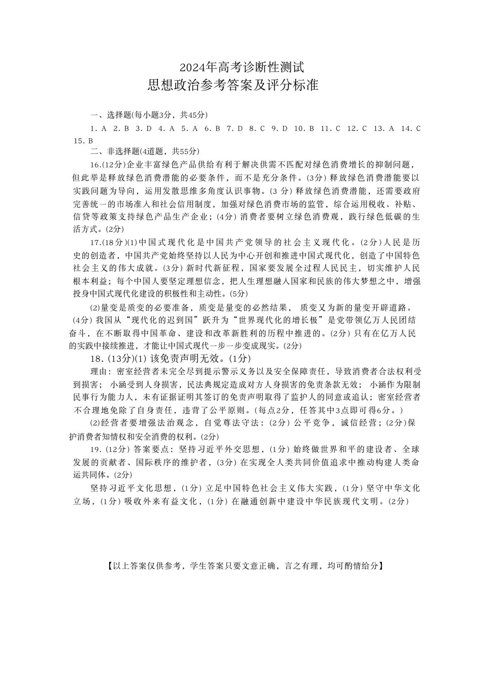 山东省烟台德州东营2024年高考诊断性测试(一模)政治答案