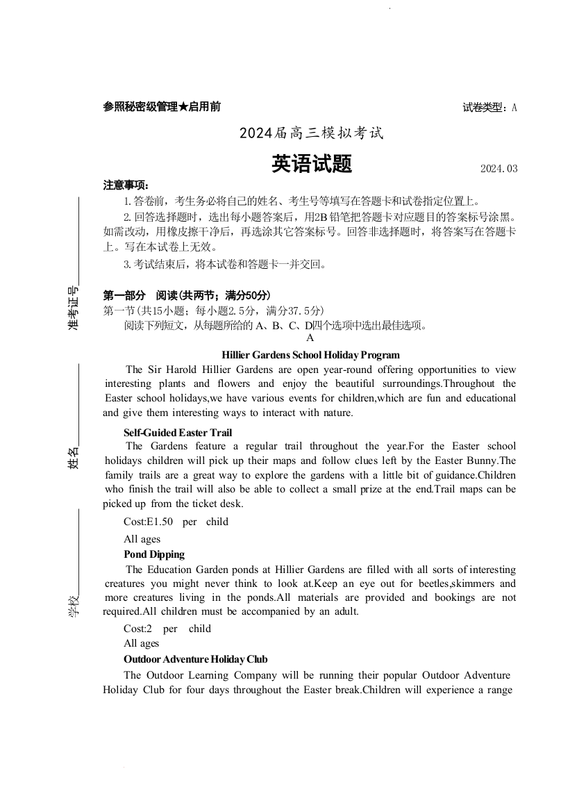 山东省枣庄市2024届高三下学期3月模拟考试(枣庄二模)英语