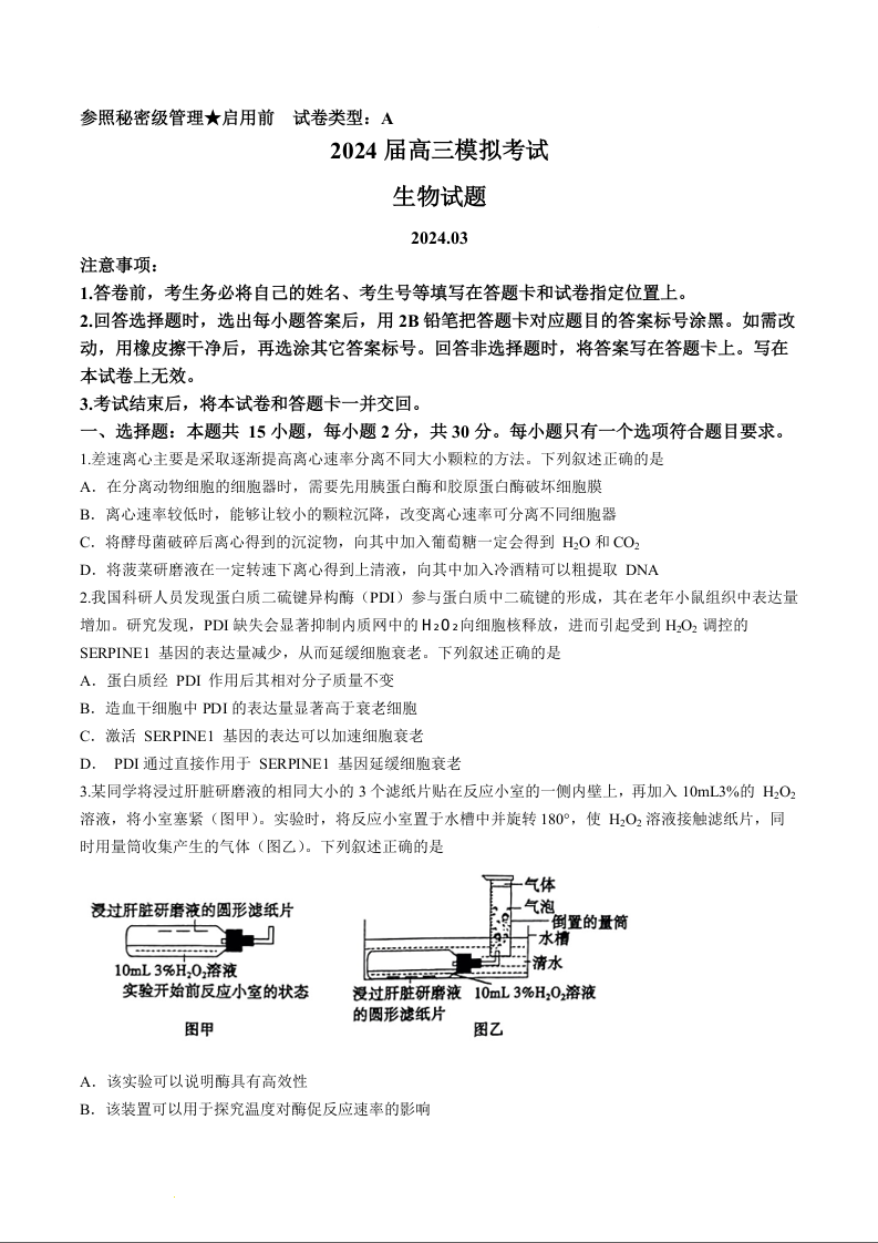 山东省枣庄市2024届高三下学期3月模拟考试(枣庄二模)生物