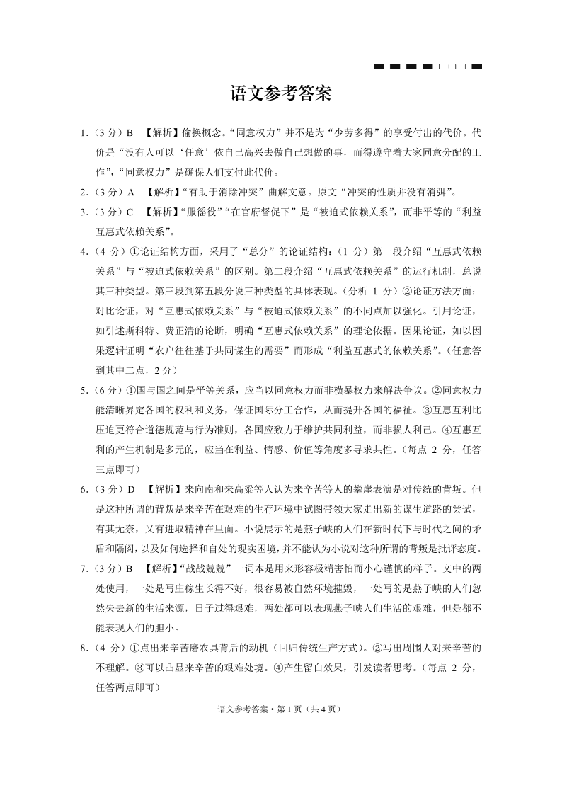 重庆市第八中学2024届高考适应性月考卷(六)语文答案