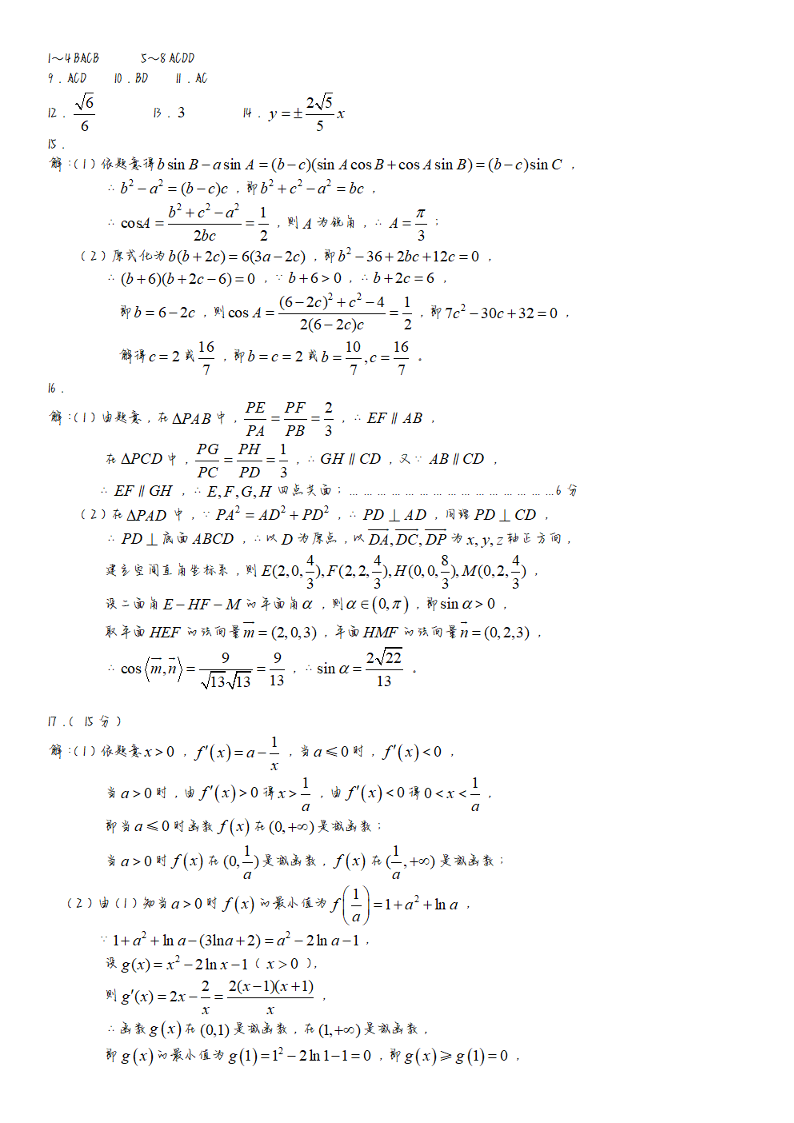 康德2024届重庆市普通高等学校招生全国统一考试高考模拟调研卷(三)数学答案