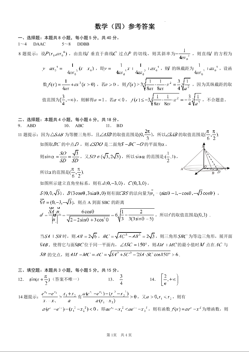 重庆市康德卷2024年普通高等学校招生全国统一考试高考模拟调研卷(四)数学答案