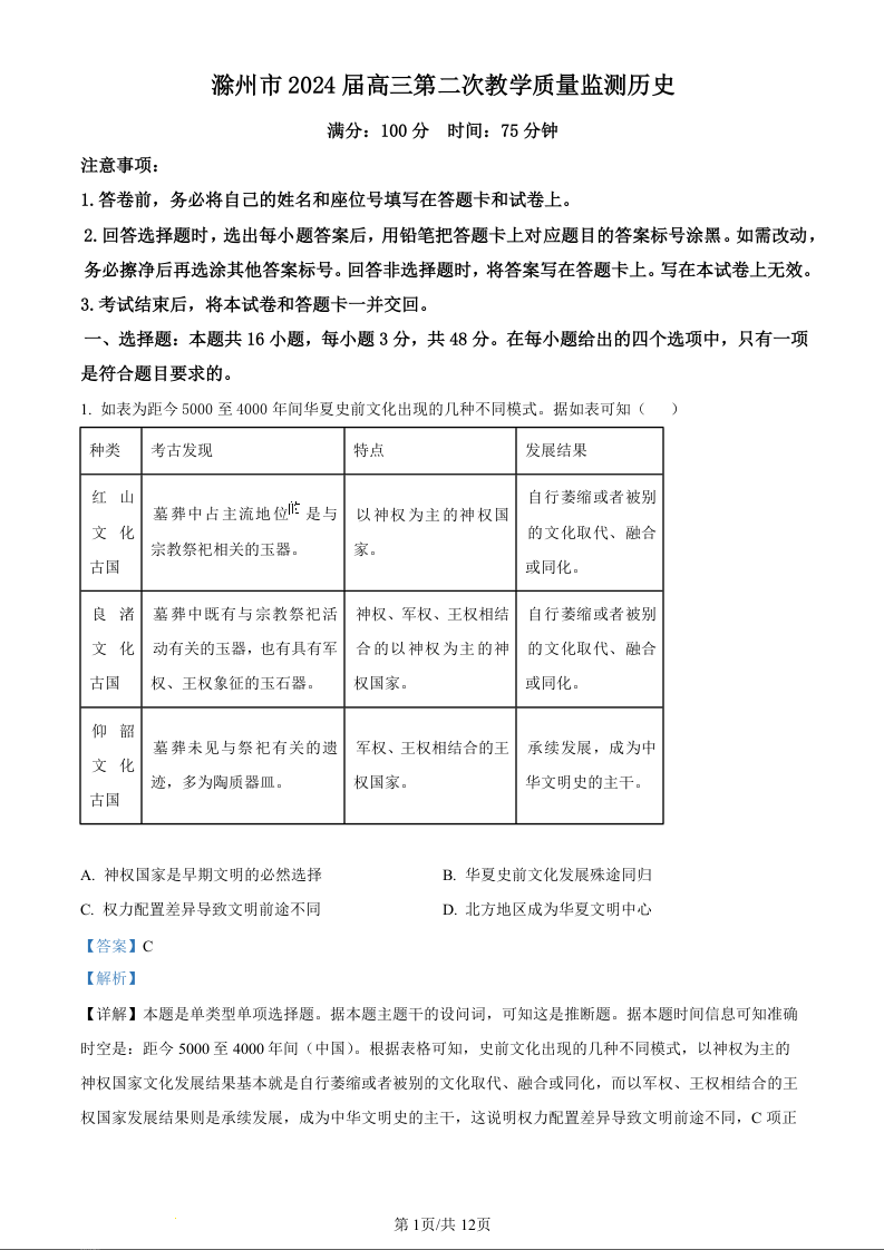 安徽省蚌埠市2024届高三下学期第四次教学质量检测考试(蚌埠四模滁州二模)历史(精品解析版)