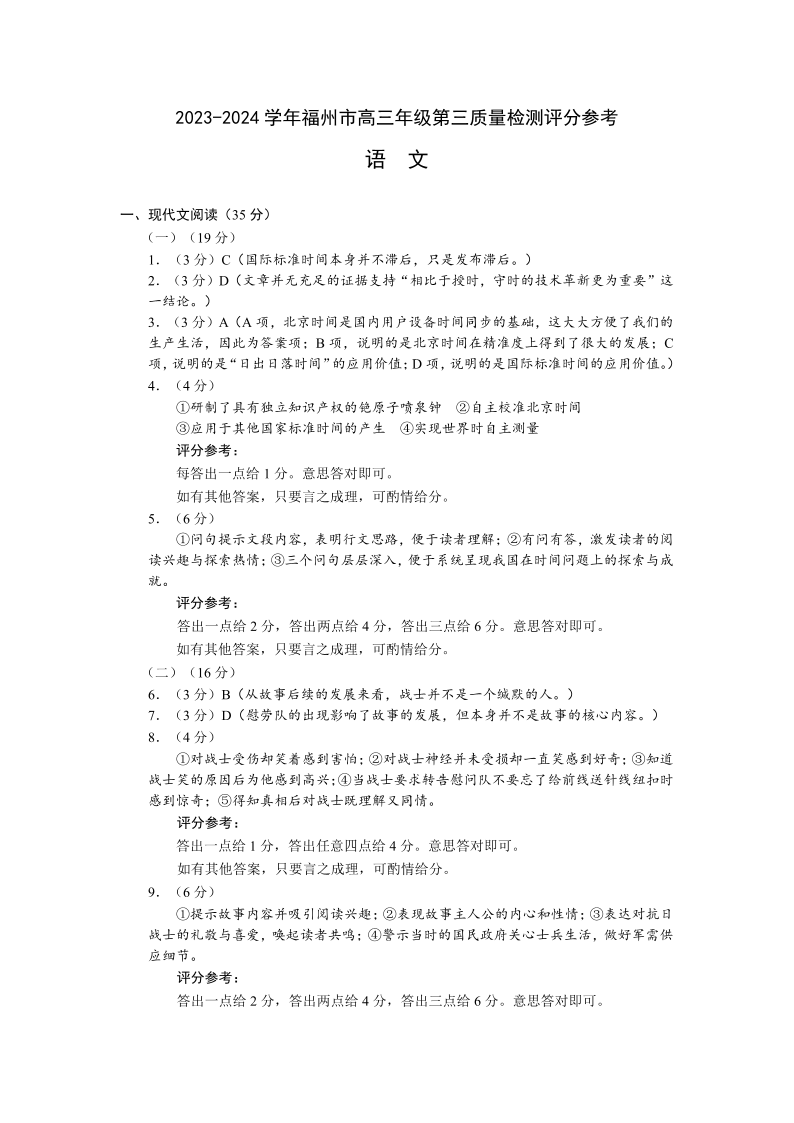 福建省部分地市2024届高中毕业班4月诊断性质量检测语文答案