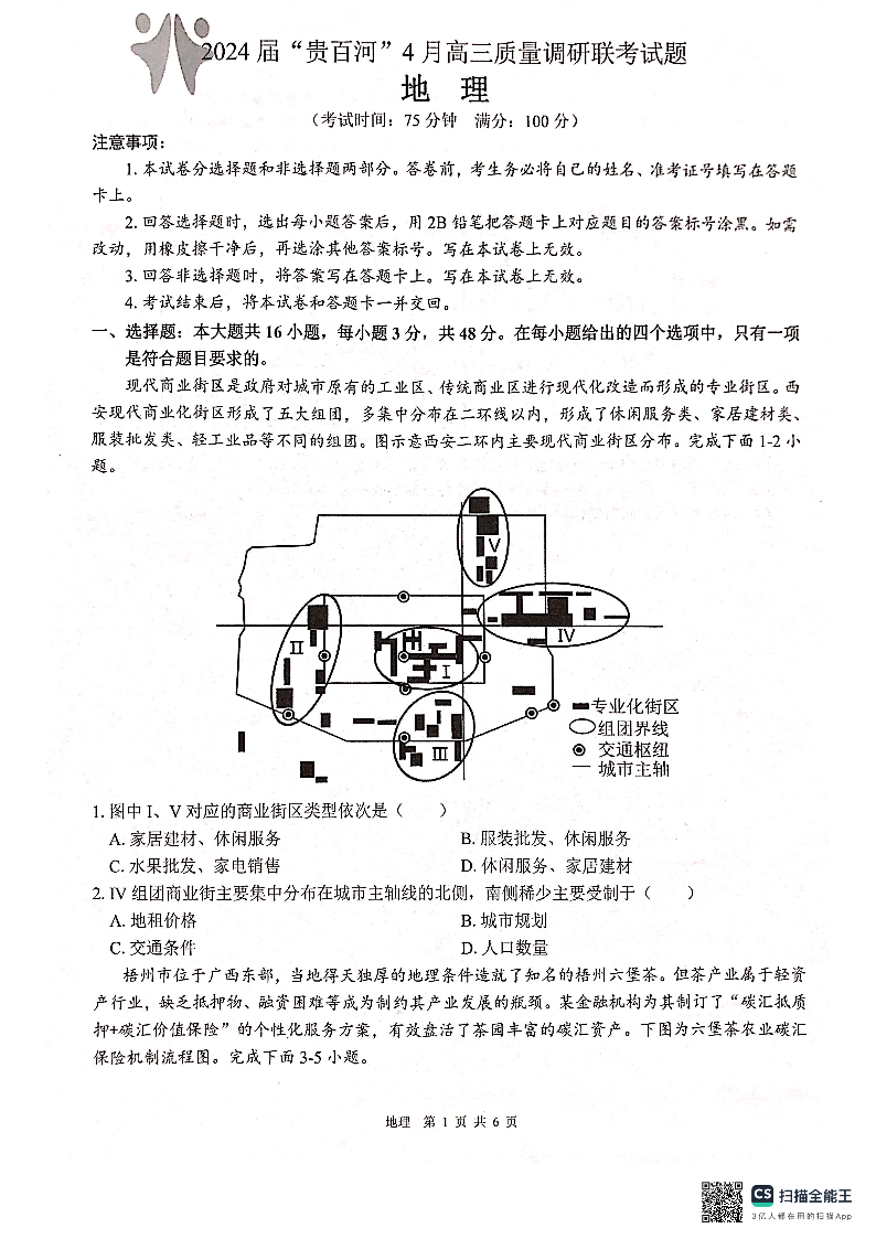 广西省2024届“贵百河”4月高三质量调研联考地理