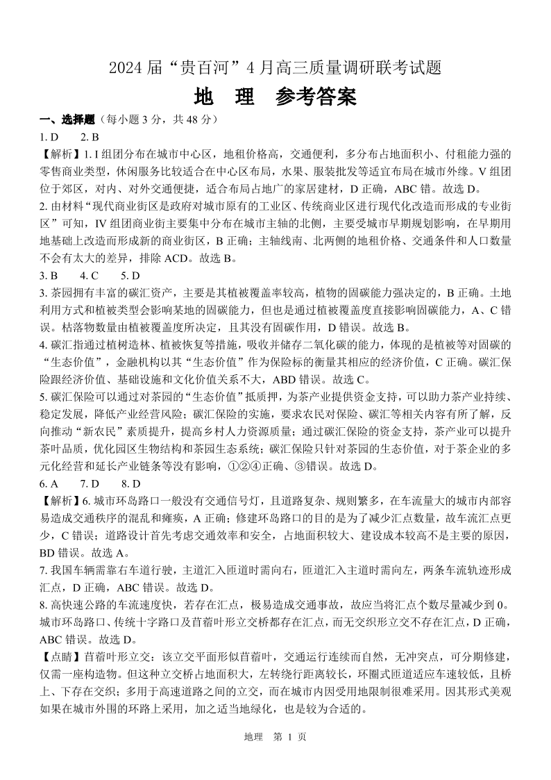 广西省2024届“贵百河”4月高三质量调研联考地理答案