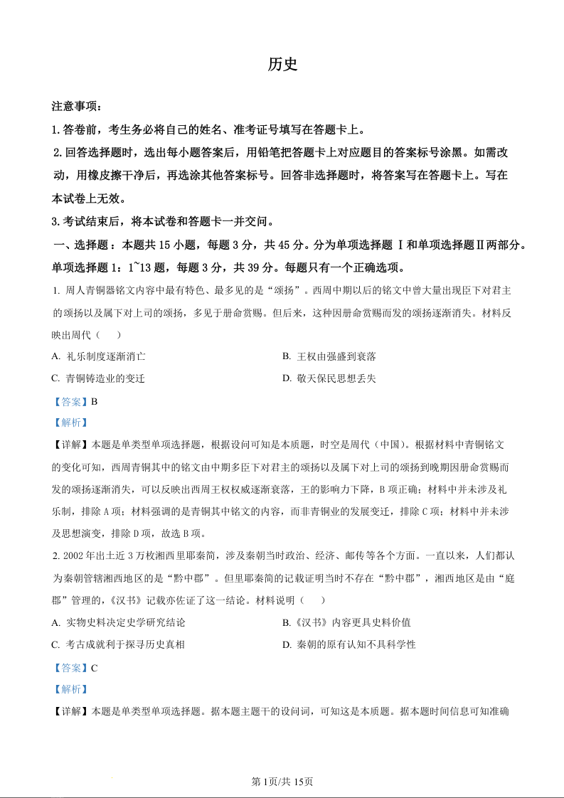 海南省海口市2024届高三下学期一模(4月调研)(海口一模)历史(精品解析版)