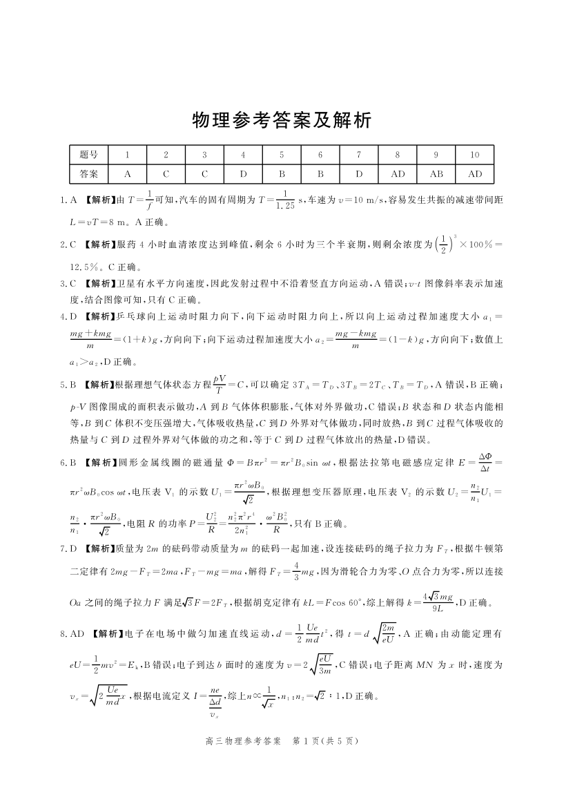 河北省2024届高三大数据应用调研联合测评(Ⅵ)物理答案