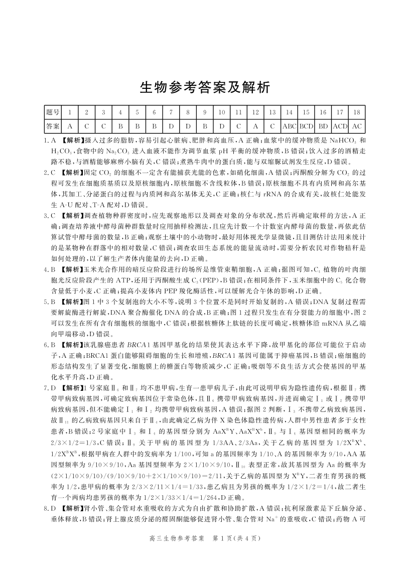 河北省2024届高三大数据应用调研联合测评(Ⅵ)生物答案