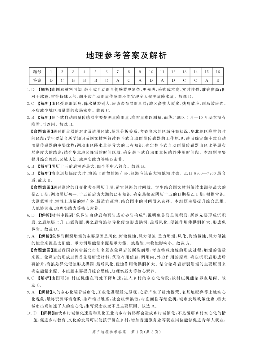 河北省2024届高三大数据应用调研联合测评(Ⅵ)地理答案