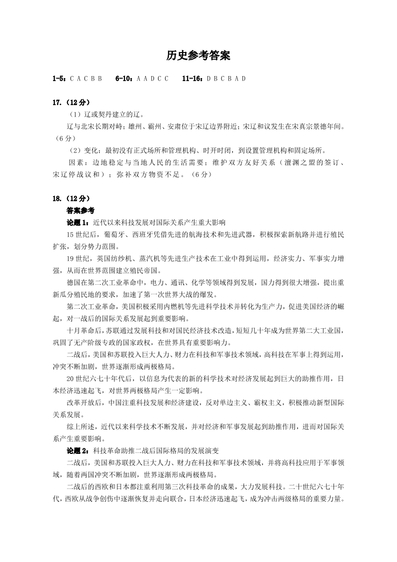 河北省保定邢台市2024年高三第一次模拟考试(保定邢台一模)历史答案