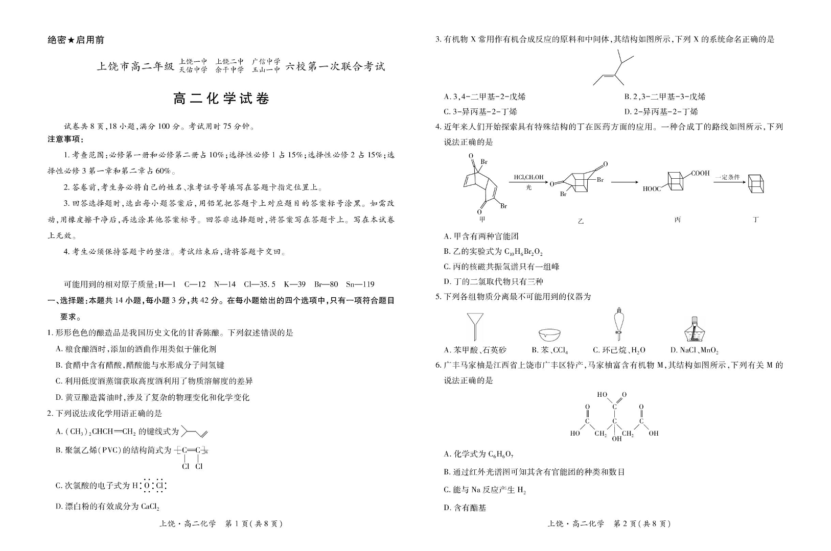 江西省上饶市六校2024-2025学年高二下学期5月第一次联合考试化学+答案