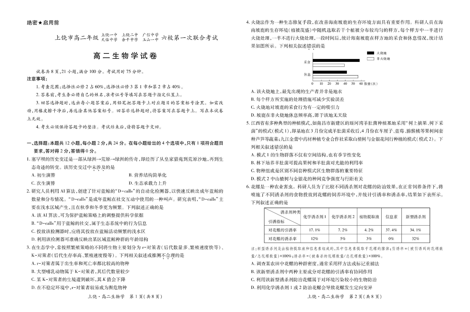江西省上饶市六校2024-2025学年高二下学期5月第一次联合考试生物+答案