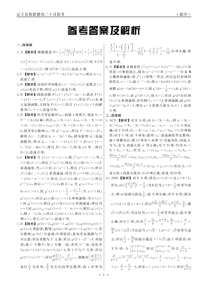 辽宁省名校联盟2024-2025学年高二下学期6月份联合考试数学答案