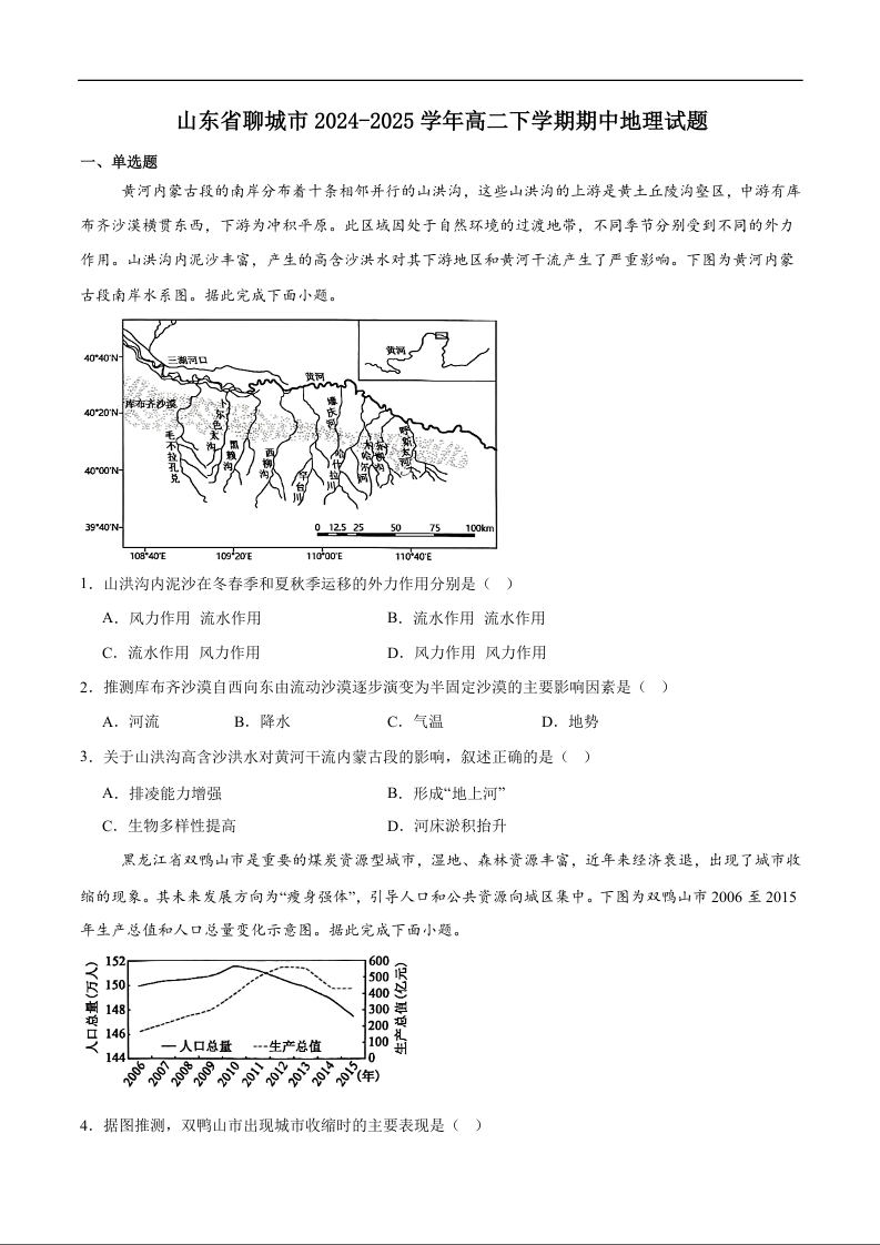 山东省聊城市2024-2025学年高二下学期期中考试地理+答案