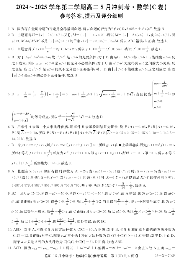 山西省卓越联盟2024-2025学年高二下学期5月冲刺考试数学(C卷)答案
