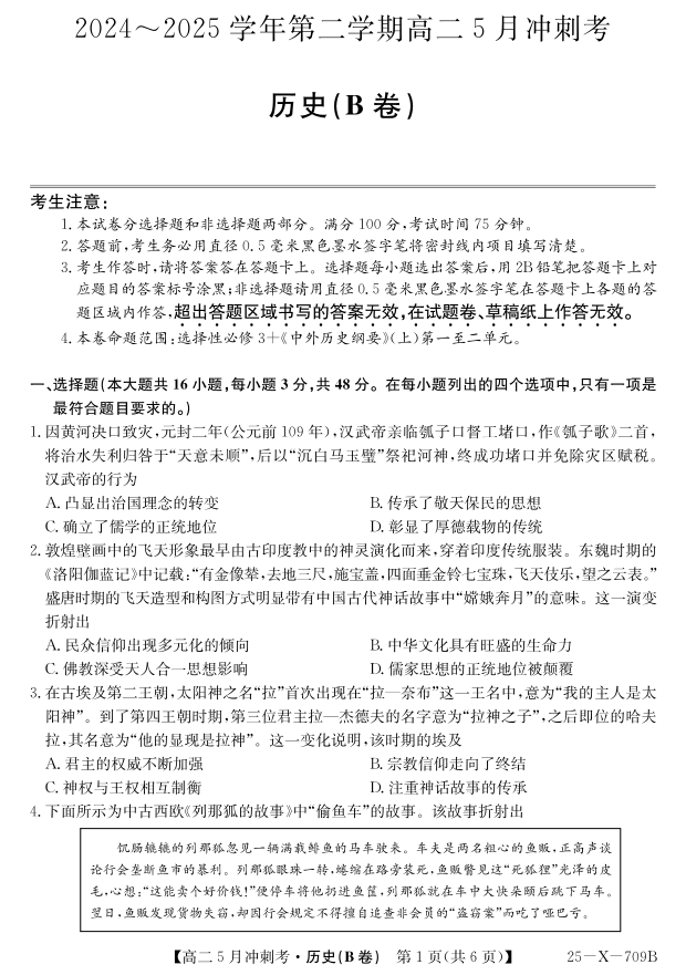 山西省卓越联盟2024-2025学年高二下学期5月冲刺考试历史(B)