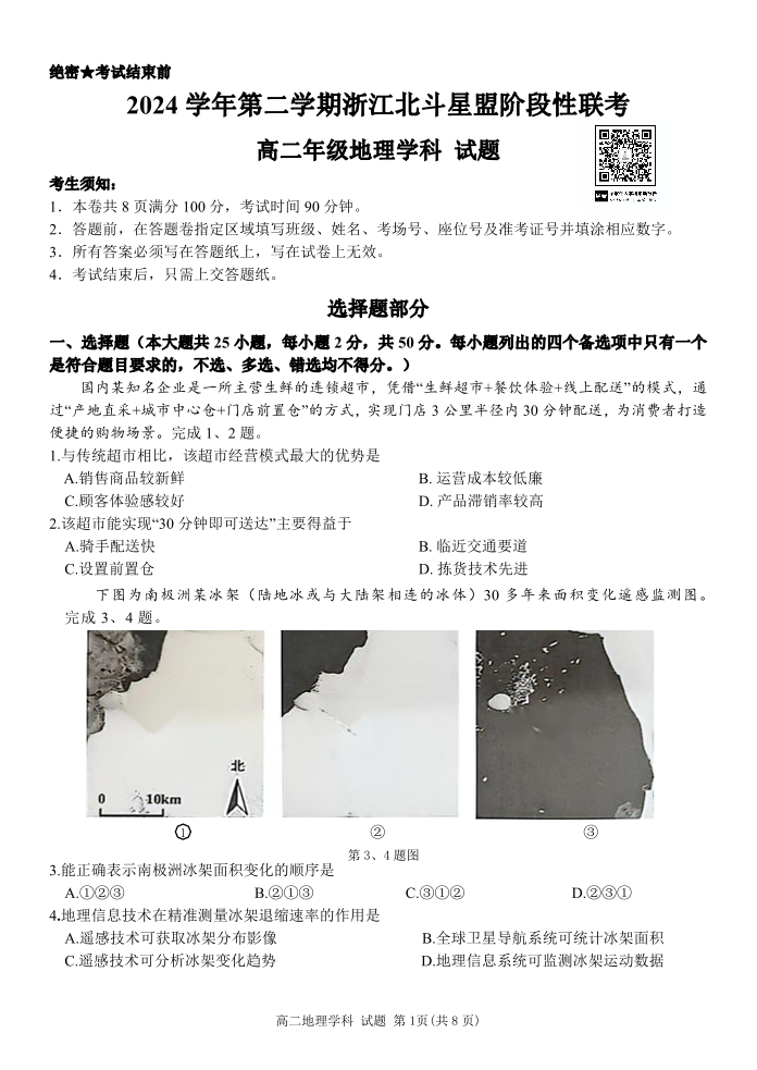 浙江省北斗星盟2024-2025学年高二下学期阶段性联考地理