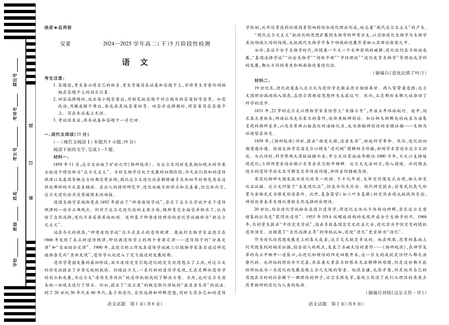 安徽省部分学校2024-2025学年高二下学期5月阶段性测试语文