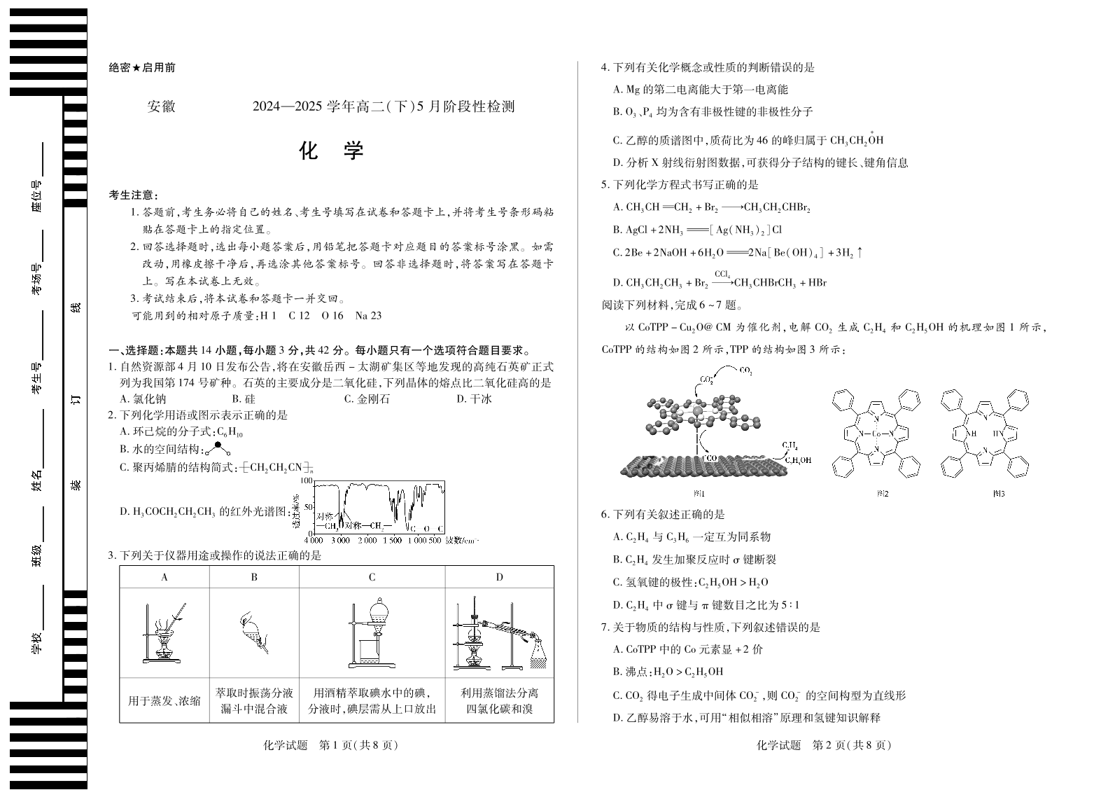 安徽省部分学校2024-2025学年高二下学期5月阶段性测试化学