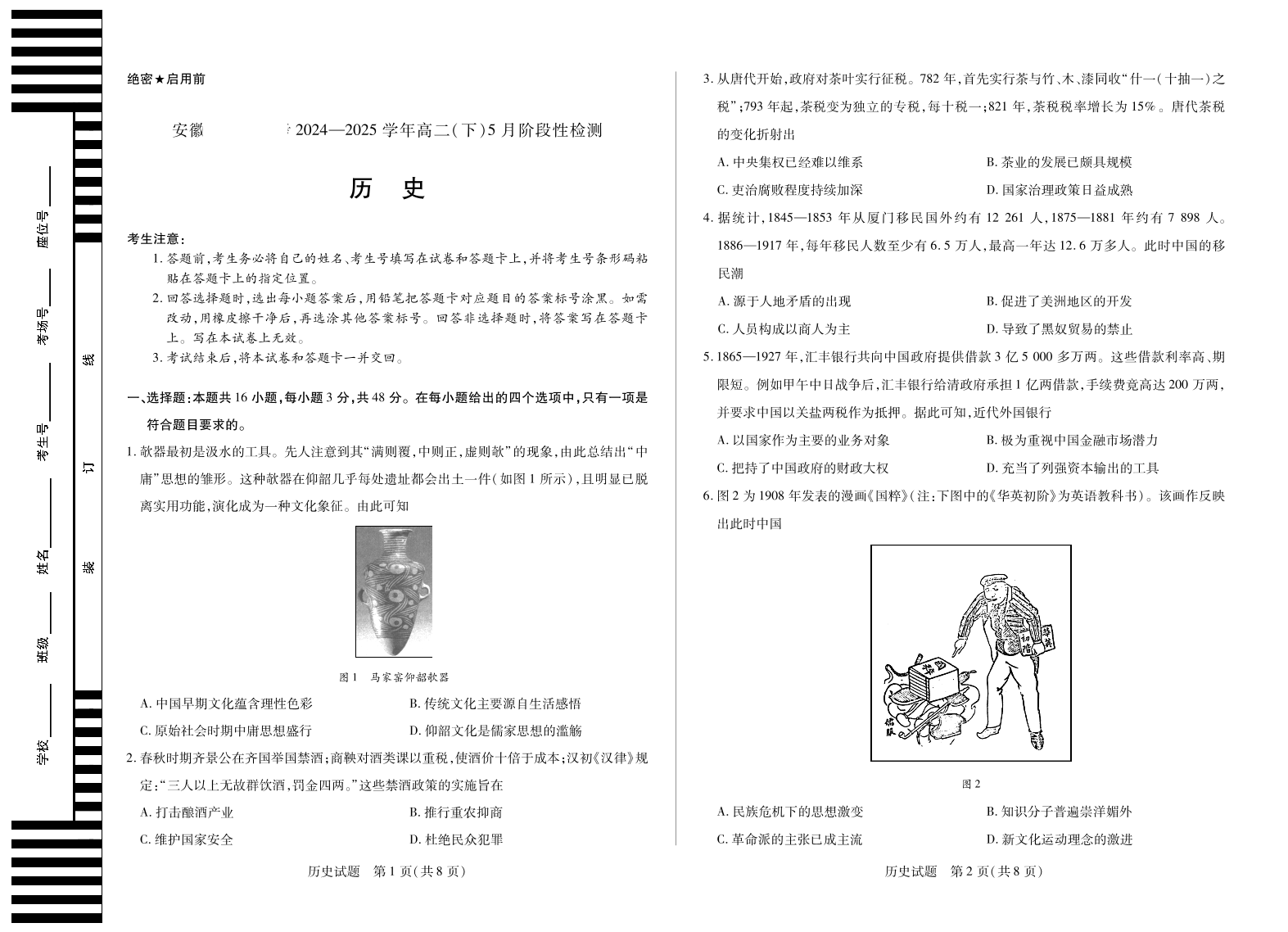 安徽省部分学校2024-2025学年高二下学期5月阶段性测试历史
