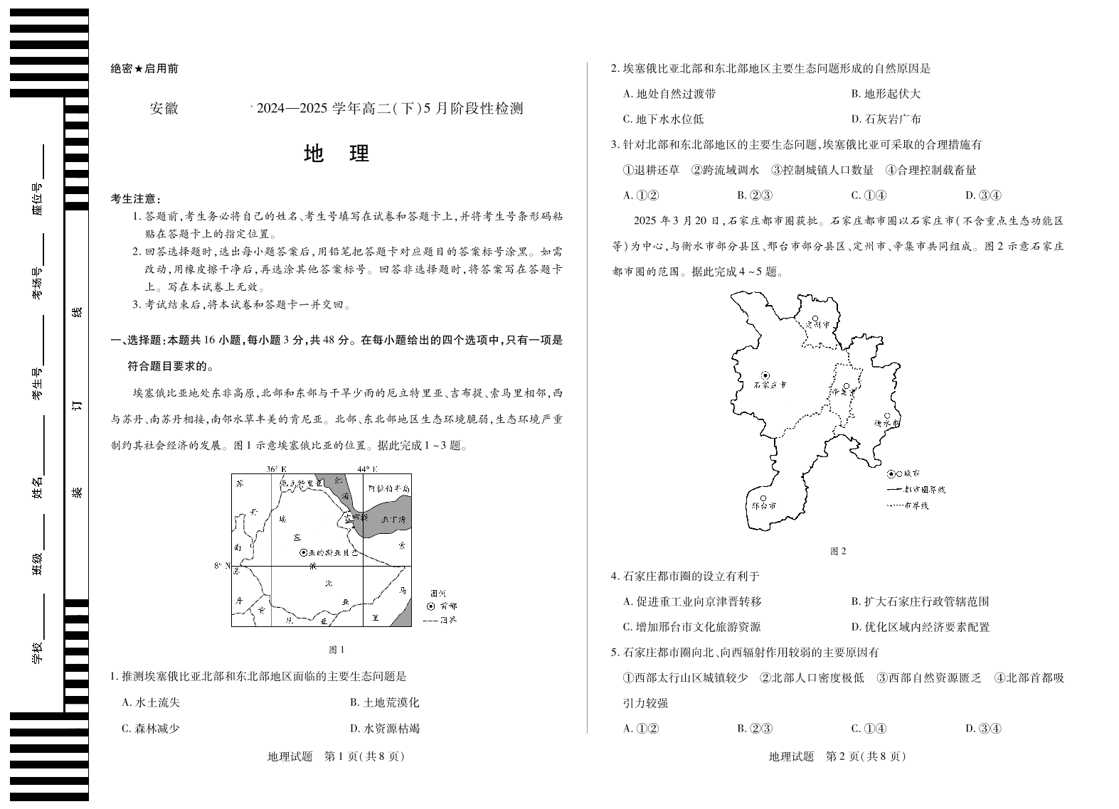 安徽省部分学校2024-2025学年高二下学期5月阶段性测试地理