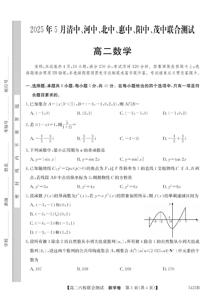 广东省六校(清中、河中、惠中、茂中等)2024-2025学年高二下学期5月联合测试数学+答案