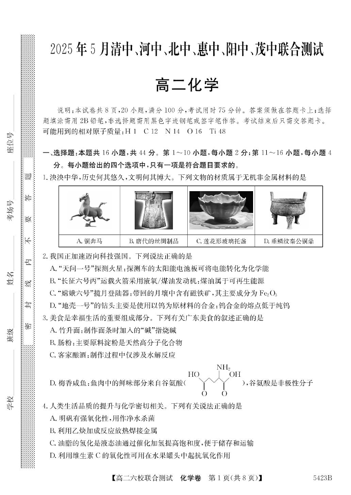 广东省六校(清中、河中、惠中、茂中等)2024-2025学年高二下学期5月联合测试化学+答案