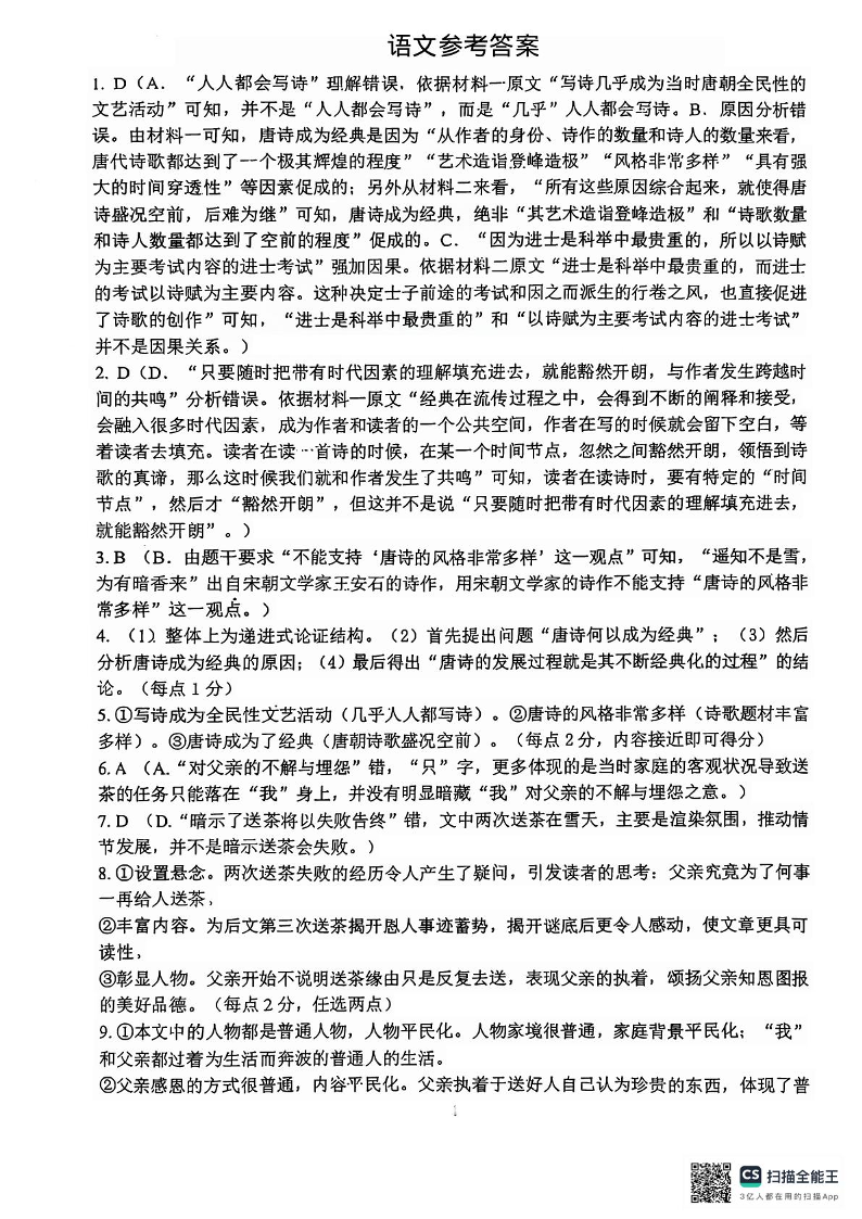 广西来宾市2024-2025学年高二下学期5月期中考试语文答案