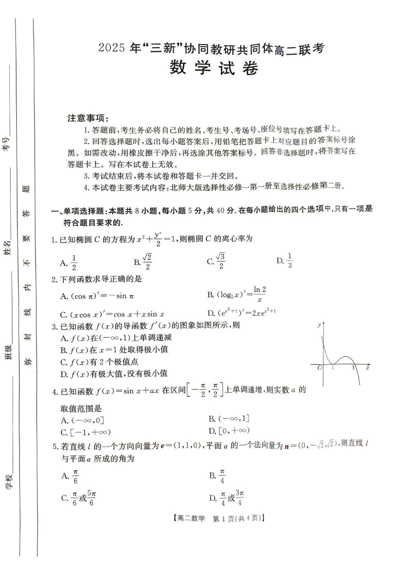 江西省三新协同教研共同体2024-2025学年高二下学期5月联考数学+答案