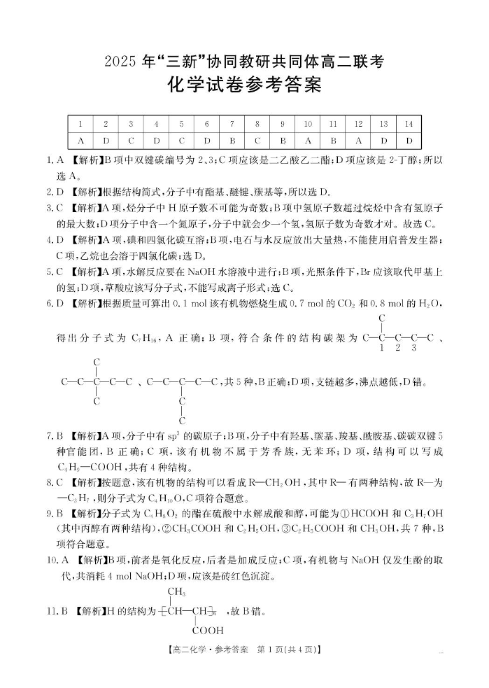 江西省三新协同教研共同体2024-2025学年高二下学期5月联考化学答案