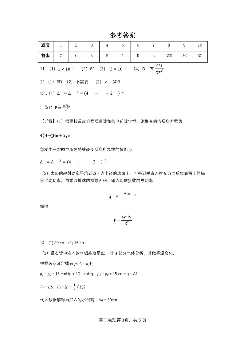 黑龙江省哈尔滨市第三中学校2024-2025学年高二下学期6月月考物理答案