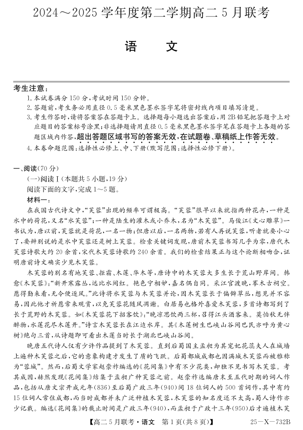 安徽省县中联盟2024-2025学年高二下学期5月联考语文