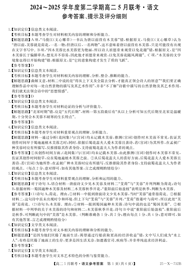 安徽省县中联盟2024-2025学年高二下学期5月联考语文答案