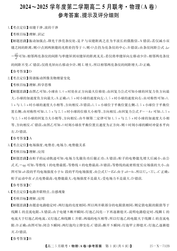 安徽省县中联盟2024-2025学年高二下学期5月联考物理答案