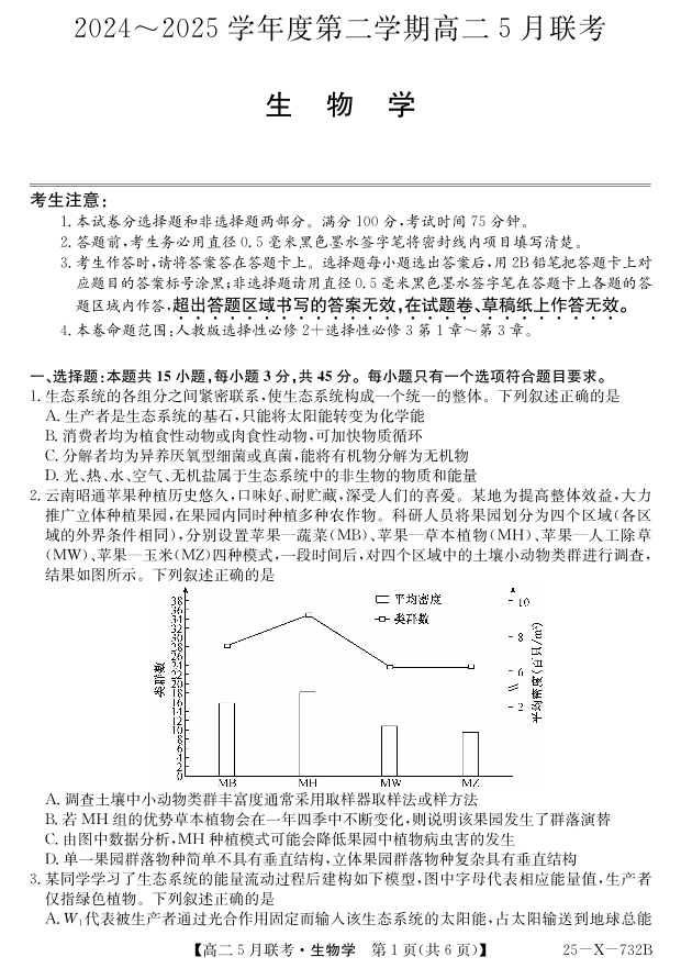安徽省县中联盟2024-2025学年高二下学期5月联考生物