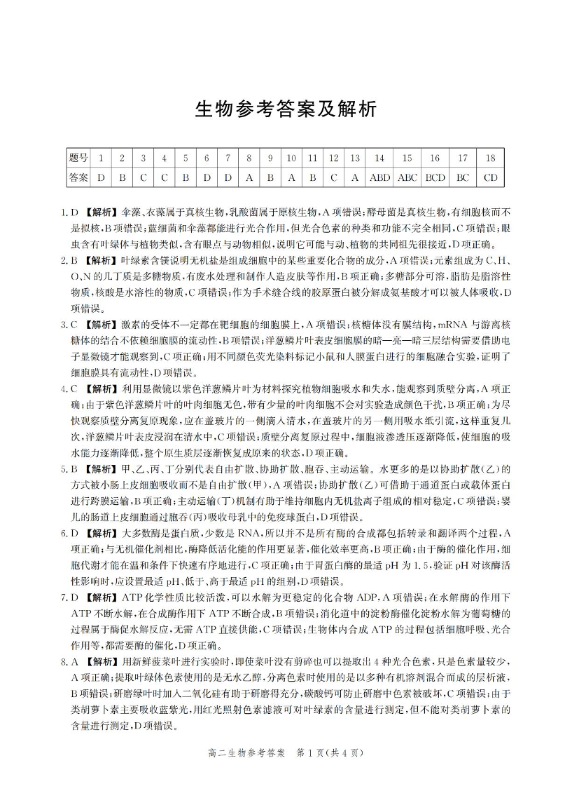 河北省2024-2025学年高二年级第二学期期末模拟检测生物答案
