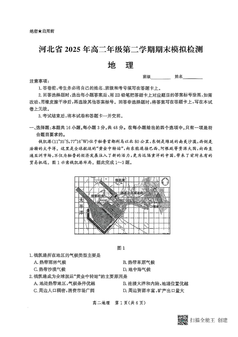 河北省2024-2025学年高二年级第二学期期末模拟检测地理+答案