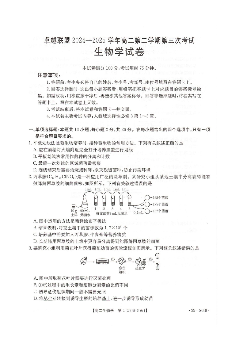 河北省邢台市卓越联盟2024-2025学年高二下学期第三次考试生物