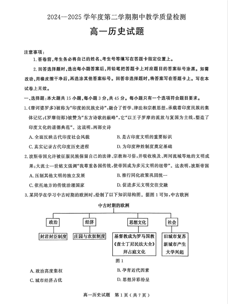 山东省聊城市2024-2025学年高一下学期期中考试历史+答案