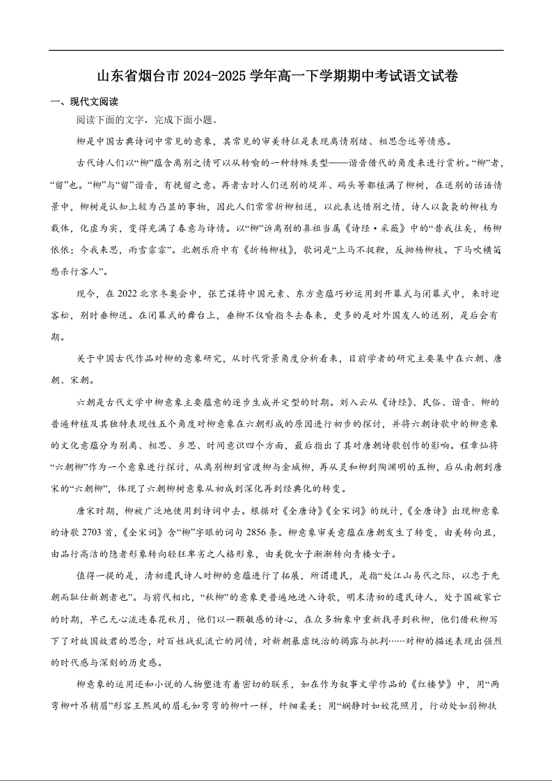 山东省烟台市2024-2025学年高一下学期期中学业水平诊断试题语文+答案