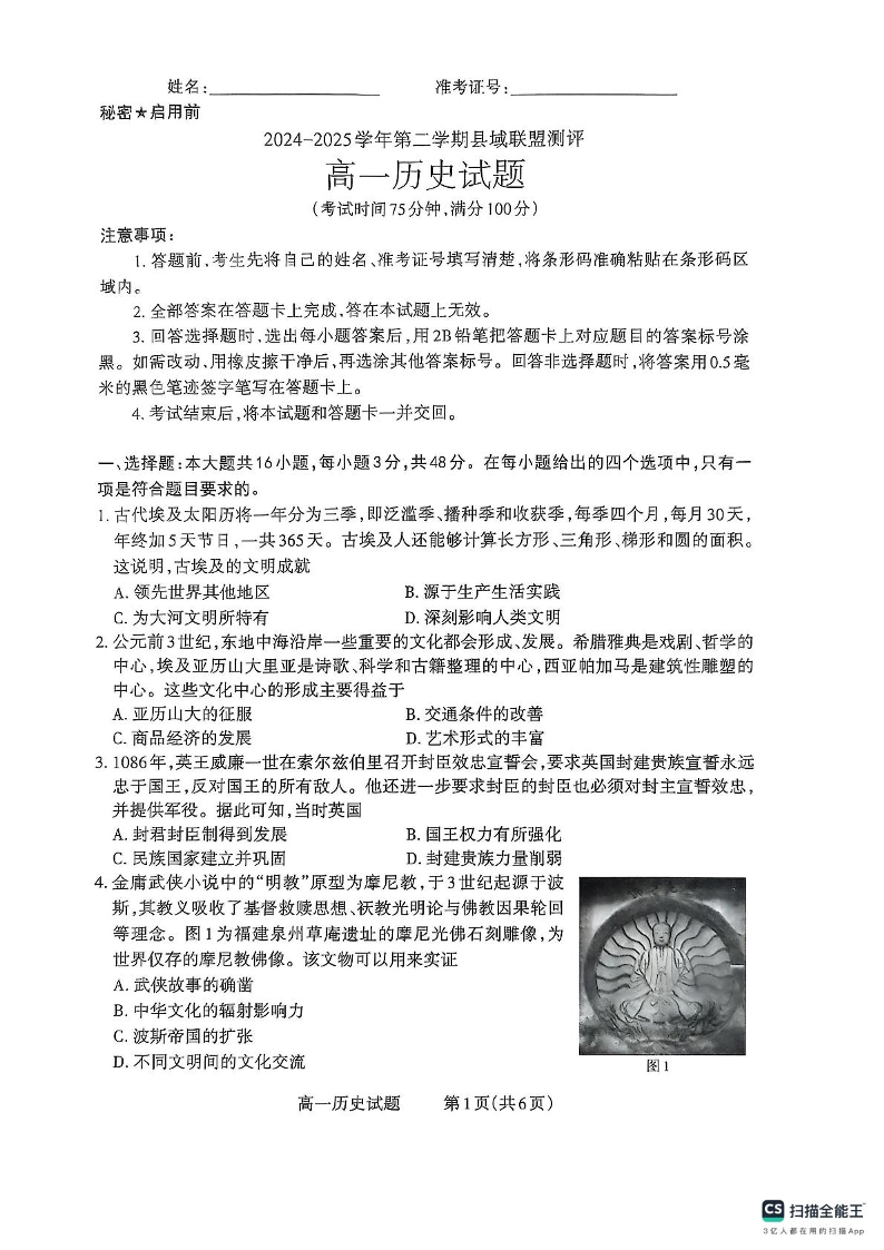 山西省县域联盟2024-2025学年高一下学期5月月考历史