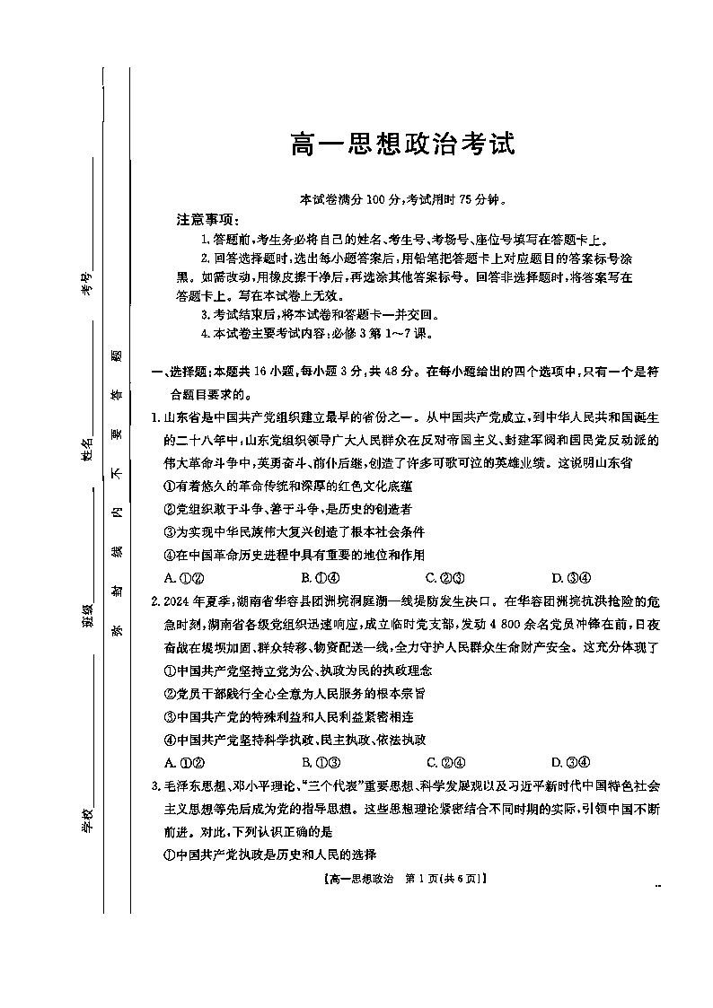 陕西省汉中市部分学校2024-2025学年高一下学期5月阶段性测试政治+答案