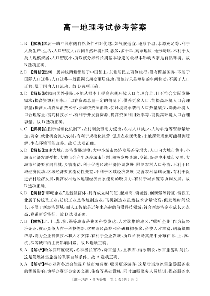 陕西省汉中市部分学校2024-2025学年高一下学期5月阶段性测试地理答案