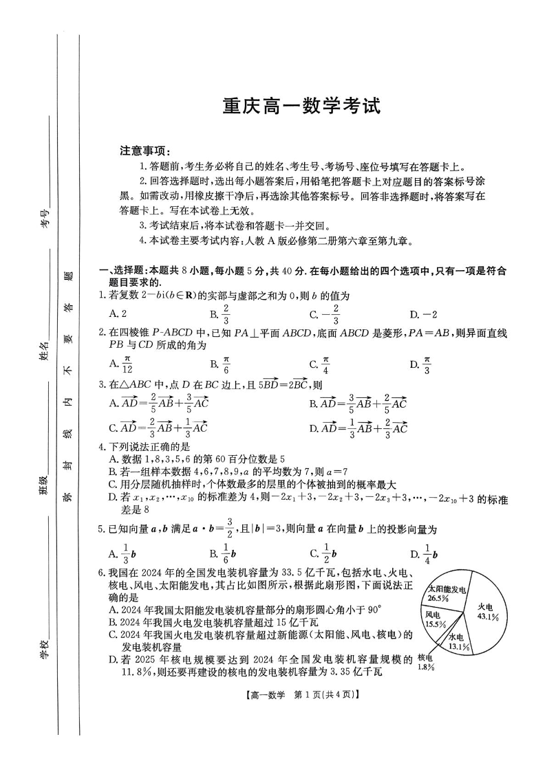 重庆市万州第三中学等多校联考2024-2025学年高一下学期5月月考试题数学