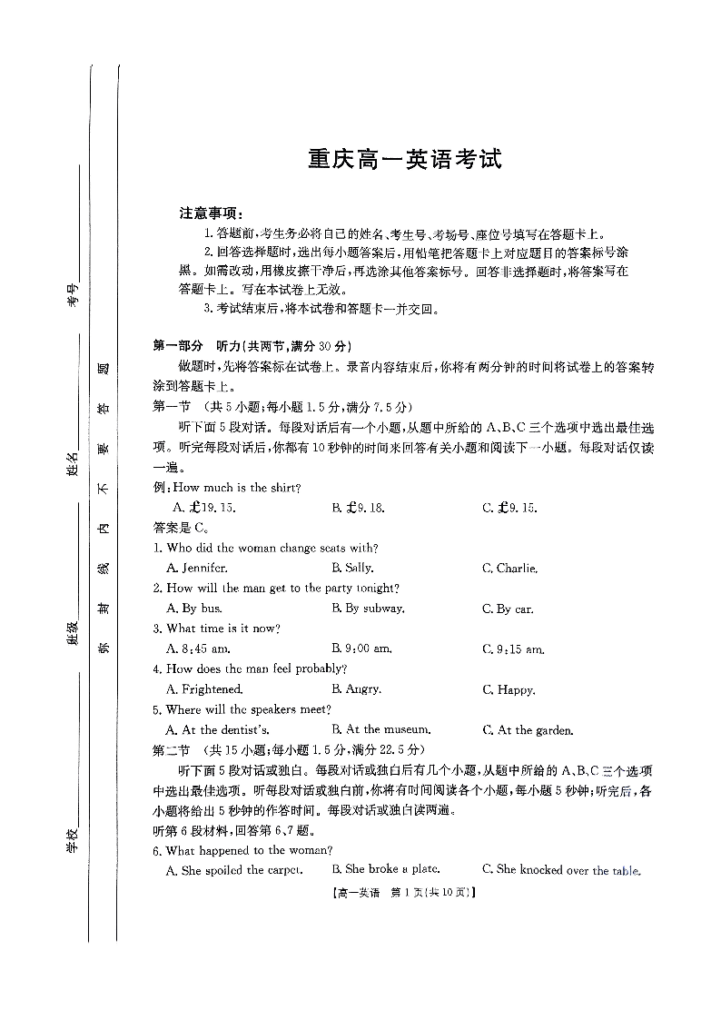 重庆市万州第三中学等多校联考2024-2025学年高一下学期5月月考试题英语+答案