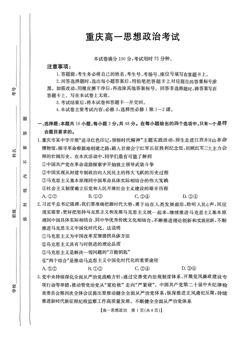 重庆市万州第三中学等多校联考2024-2025学年高一下学期5月月考试题政治