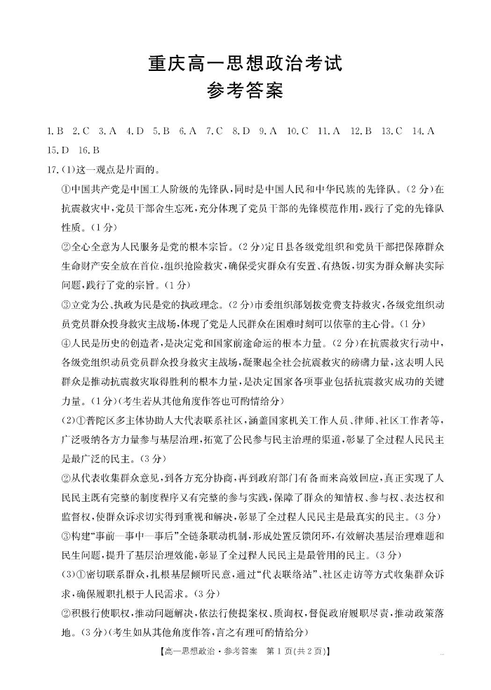 重庆市万州第三中学等多校联考2024-2025学年高一下学期5月月考试题政治答案
