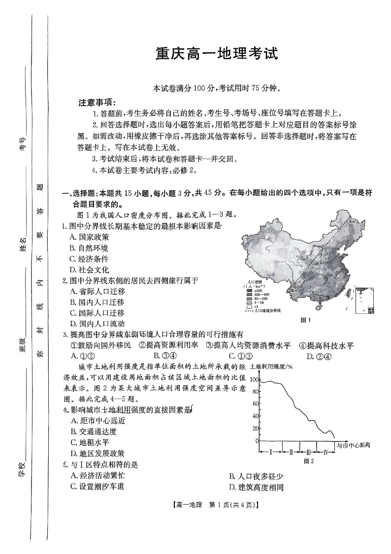 重庆市万州第三中学等多校联考2024-2025学年高一下学期5月月考试题地理
