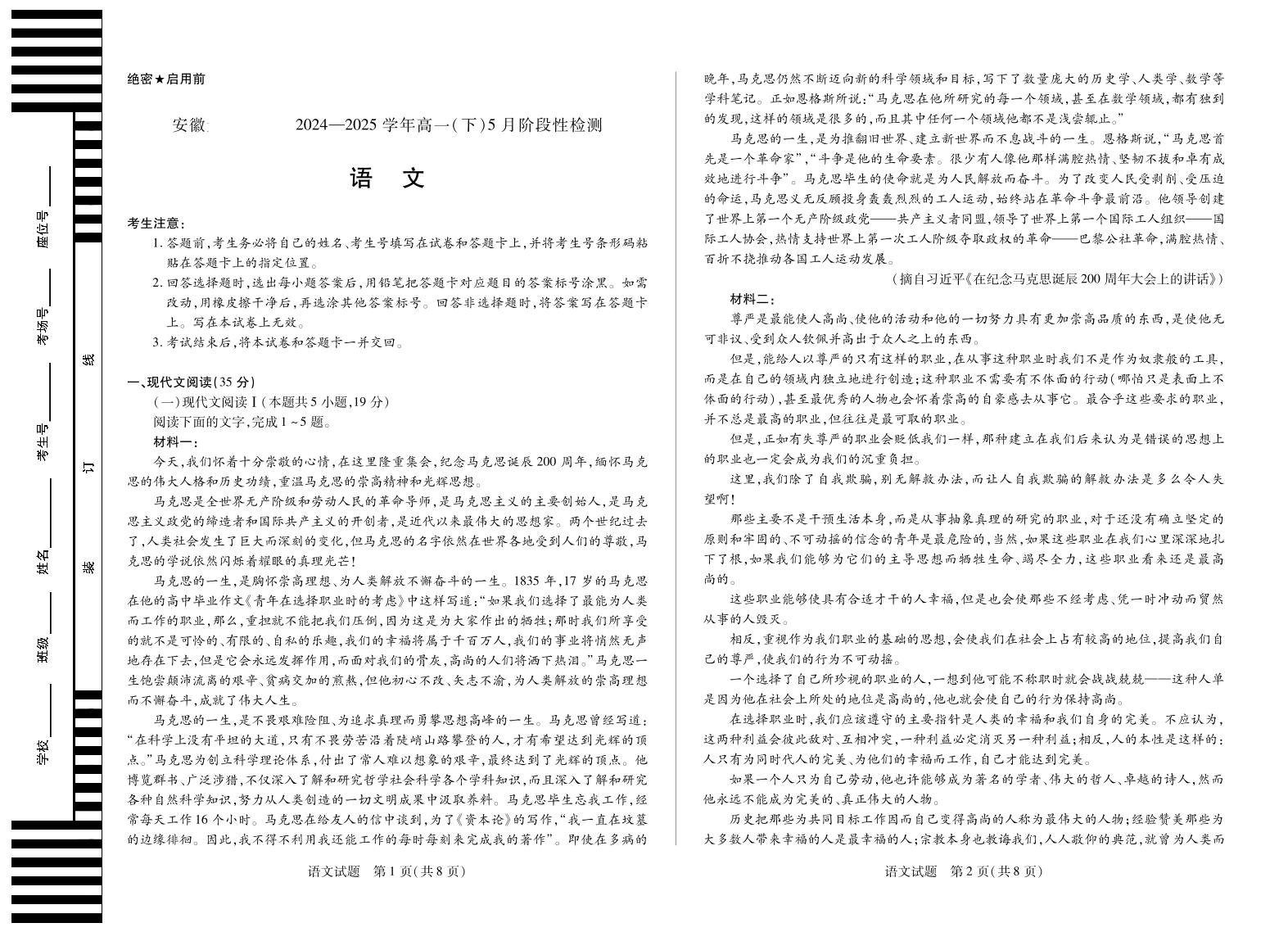 安徽省部分学校2024-2025学年高一下学期5月阶段性测试语文